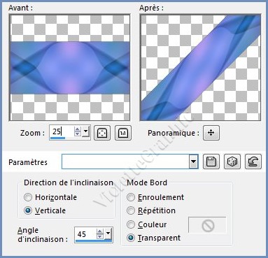 11 - Activer le calque supérieur **Effets/Effets géométriques/inclinaison réglages suivants :