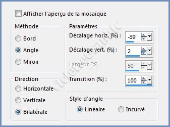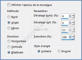 40 - Effets/Effets d'image/Mosaïque sans jointure réglages suivants: