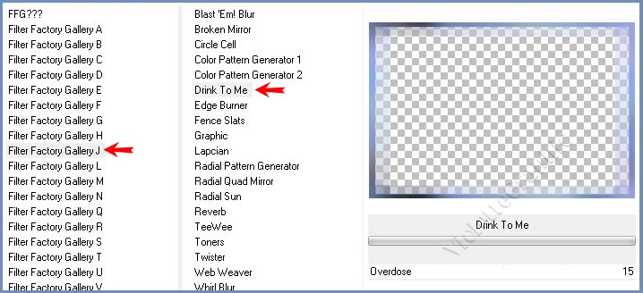 42 - Activer le calque inférieur Sélections/ Inverser Sélection/Transformer la sélection en calque **Effets /Unlimited 2.0/ Filter Factory Gallery J / Drink To Me réglages suivants: