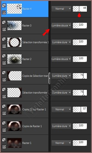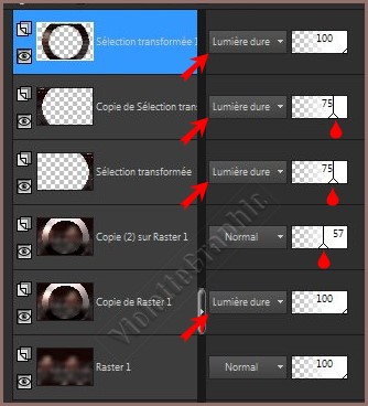 8 - Calques/Dupliquer Activez le calque juste en dessous (copie de raster 1) Mode de fusion : Lumière Dure