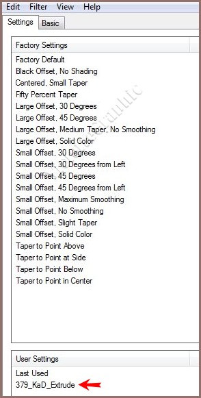 4 - Effets/ Alien Skin Eye Candy 5 Effet / Extrude Appliquer le preset "379_KaD_Extrude"