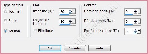 3 - Effets/Effets d'image/Mosaïque sans jointure réglages par défaut Réglages/Flou/Flou radial réglages suivants :