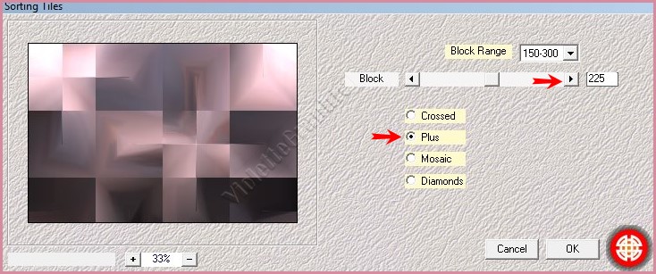 4 - Calques/Fusionner les calques visibles Renommer ce calque: Raster 1 Effets/Medhi/Sorting Tiles réglages suivants :
