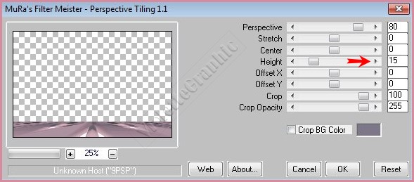 8 - Calques/Dupliquer Effets/Mura's Meister/Perspective Tiling réglages suivants :