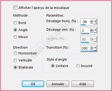 **Effets/Effets d'image/Mosaïque sans jointure réglages suivants : Côte à côte