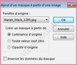 **Activer le masque Narah_Mask_1295.Jpg Calques/Nouveau calque de masque/à partir d'une image/Ajout d'un masque à partir d'une image sélectionner le masque Narah_Mask_1295.jpg