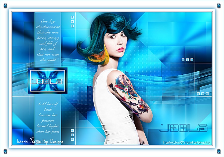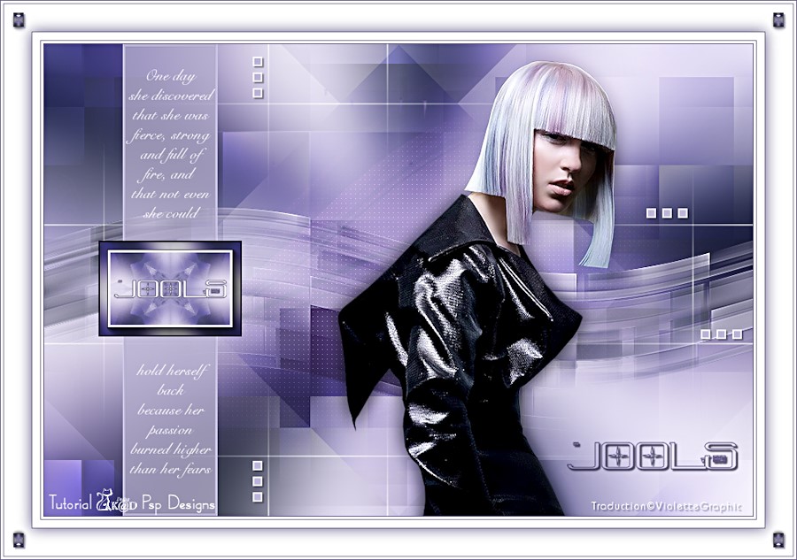 Merci beaucoup à Karin de m'avoir donné l'exclusivité de la traduction française de ses tutoriels*** *** Ces traductions m'appartiennent Il est strictement interdit de les copier ou de les distribuer sur le Net Les tutoriels sont la propriété de leurs auteurs *** 431 - JOOLS vous trouverez l'original de ce tutoriel ICI *** Ce tutoriel a été réalisé dans PSP 2018 mais peut être effectué dans les autres versions PSP Ces traductions m'appartiennent Il est strictement interdit de les copier ou de les distribuer sur le Net *** Pour faire ce tutoriel vous aurez besoin : Tubes Karin : KaD_Woman_146 431_Deco1 + 431_Deco2 431_KaD_Text1 + 431_KaD_Text2 431_KaD_Preset_Flexify2 ( à garder dans le dossier matériel) Sélection: 431_KaD_Alfakanaal .pspimage *** Filtres : ICI Mehdi / Wavy Lab 1.1 Simple : Blintz/ Top Left Mirror MuRa’s Meister / Perspective Tiling Toadies / Weaver Unlimited 2.0 / &<BKG Kaleidoscope> Alien Skin / Eye Candy 5 / Impact Andromeda / Perspective *** *** Les tubes sont offerts à usage personnel Vous n'avez pas la permission de placer ces tubes sur un autre site sans la permission du créateur ***
