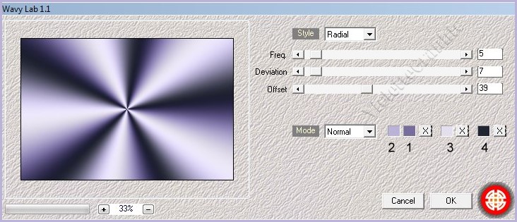 9 - Effets/Effets de Distorsion/ Vagues réglages suivants :
