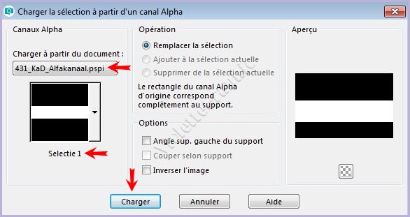 6 - Sélection/Charger/Enregistrer une sélection/Enregistrer sur un canal Alpha Charger la sélection 1