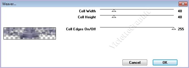 8 - Effets / Toadies / Weaver réglages suivants : 48/48/255 Sélection/Ne rien sélectionner