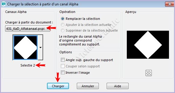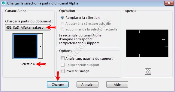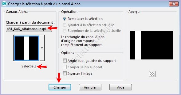 14 - Activer le calque supérieur **Calques / Nouveau calque raster Sélection/Charger/Enregistrer une sélection/Enregistrer sur un canal Alpha Charger la sélection 3