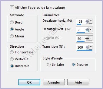 12 - Effets/Effets d'image/Mosaïque sans jointure réglages suivants :