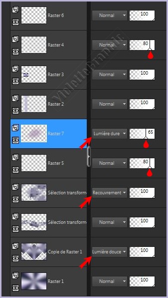 26 - Activer le calque 5 ** Ouvrir le tube 431_Deco2.png Edition/Copier/Edition/Coller comme nouveau calque ( couleur de votre premier-plan) Objets/Aligner/Droite Mode de fusion: Lumière dure Opacité à 65%