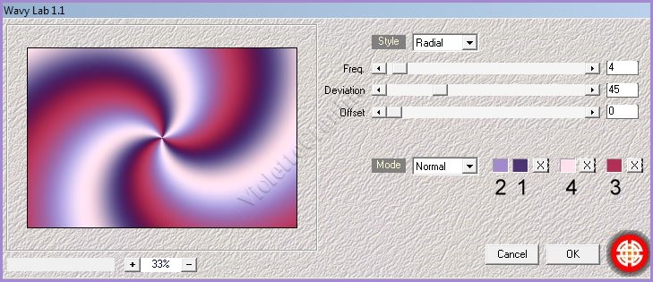 *** ** Placer en premier-plan la couleur 3 (# 4e3475) et en arrière-plan la couleur 4 (# a28acc )