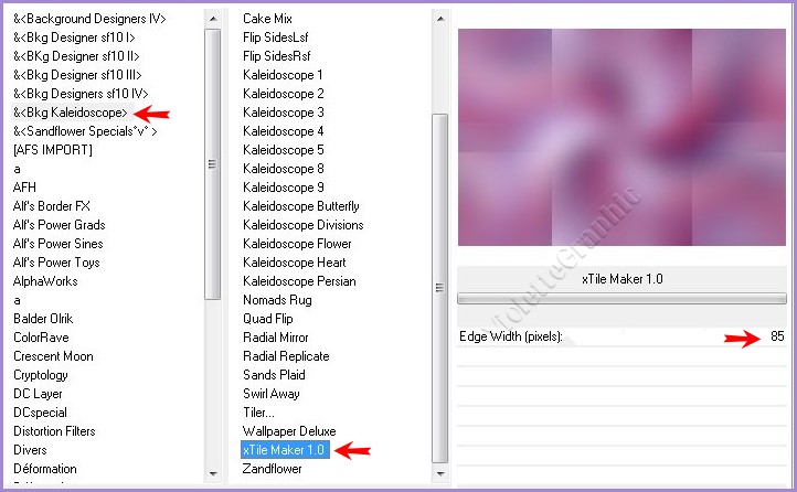 4 - Effets/Unlimited/ & <Bkg Kaléidoscope> - x Tile Maker 1.0 réglages suivants: