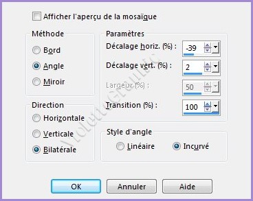 13 - Fermer le calque supérieur **Activer la couche juste en dessous Calques /Fusionner les calques visibles Effets/Effets d'image/Mosaïque sans jointure réglages suivants :