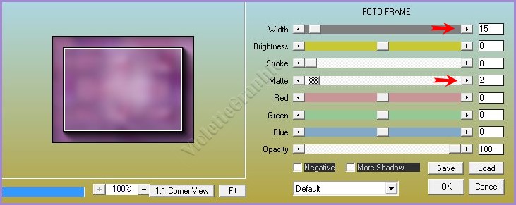 18 - Effets/AAA Frame/Foto frame réglages suivants :