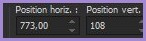 26 - Calques/Dupliquer Image/Redimensionner à 80%/décocher " Redimensionner tous les calques" **Activer l'outil sélecteur placer ces réglages X: 773 / Y: 108
