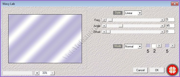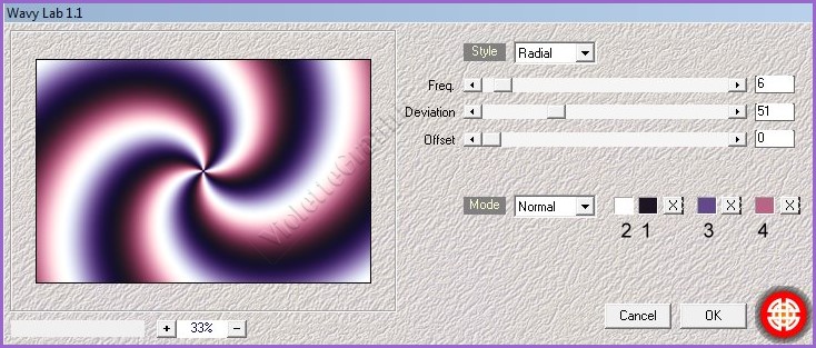 2 - Calques/Nouveau calque **Effets/Medhi/Wavy Lab réglages suivants : Attention: c'est l'autre Wawy Labs