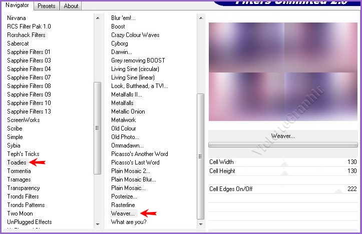 4 - Effets/ Unlimited 2.0 /Toadies/ Weaver réglages suivants :
