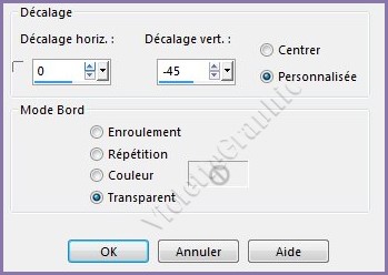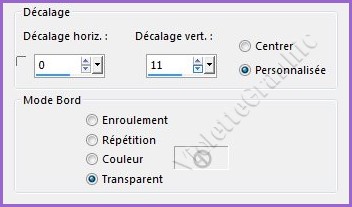 15 - Calques/Dupliquer Effets/Effets d'image/Décalage réglages suivants :