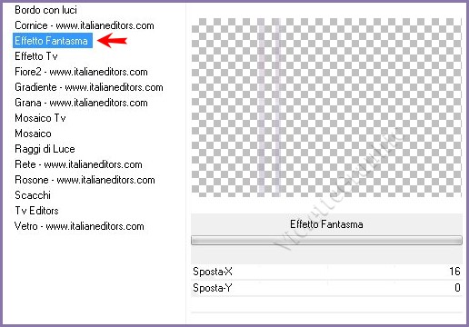 Sélection/Transformer la sélection en calque ** Effets/Italian Editors Effects/Effeto Fanstasma réglages suivants :
