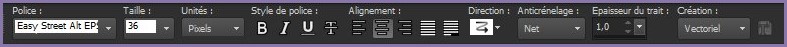 22 - Activer l'outil Texte/Police Easy Street Alt EPS/taille : 100/vectoriel/épaisseur du trait : 1 premier-plan fermé /couleur arrière-plan #ffffff