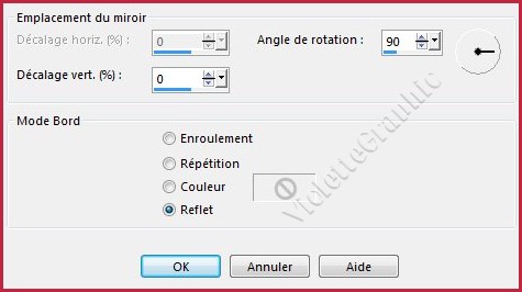 4 - Effets /Effets de réflexion/ Miroir rotatif réglages suivants :