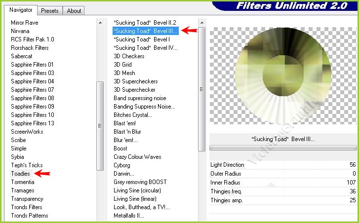 **Effets /Toadies/Sucking Toad Bevel III réglages suivants :