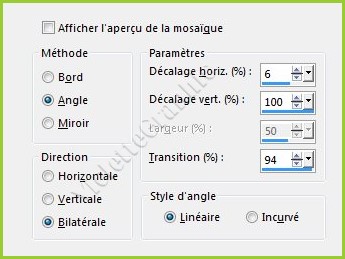 5 - Effets/Effets d'image/Mosaïque sans jointure réglages suivants : côte à côte
