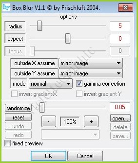 **Effets/Frischluft /Box Blur réglages suivants :
