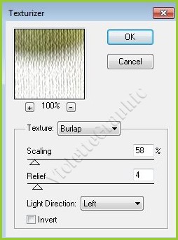 7 - Effets/ Texture/ Texturizer réglages suivants :