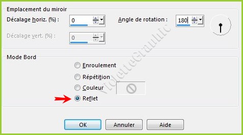 8 - Activer le calque 1 **Effets/Effets de réflexion/ Miroir rotatif réglages suivants :