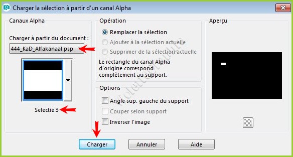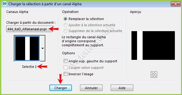 9 - Sélection/Charger/Enregistrer une sélection/charger à partir Canal AlphaCharger la sélection 1