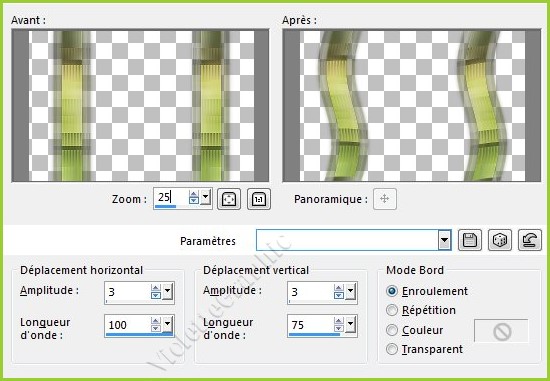 **Effets/Effets de Distorsion/ Vagues réglages suivants :