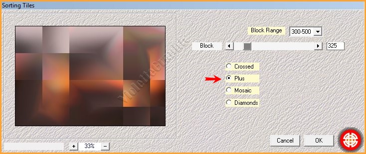 4 - Réglages/Flou/Flou gaussien : rayon : 30 Effets/Medhi/Sorting Tiles réglages suivants :