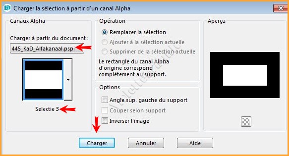 8 - Activer le calque supérieur Sélection/Charger/Enregistrer une sélection/charger à partir Canal Alpha Charger la sélection 3