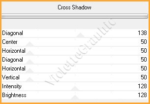 10 - Effets/Graphics Plus /Cross Shadow réglages suivants :