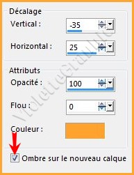 Touche "A" pour désélectionner Effets/Effets 3D/Ombre Portée : -35/25/100/0/couleur 3