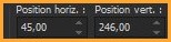 13 - Revenir sur votre création Édition/ Coller comme un nouveau calque ** Calques/Réorganiser/Déplacer vers le haut Image/Redimensionner à 65%/décocher " Redimensionner tous les calques" **Activer l'outil sélecteur placer ces réglages X: 45 / Y: 246