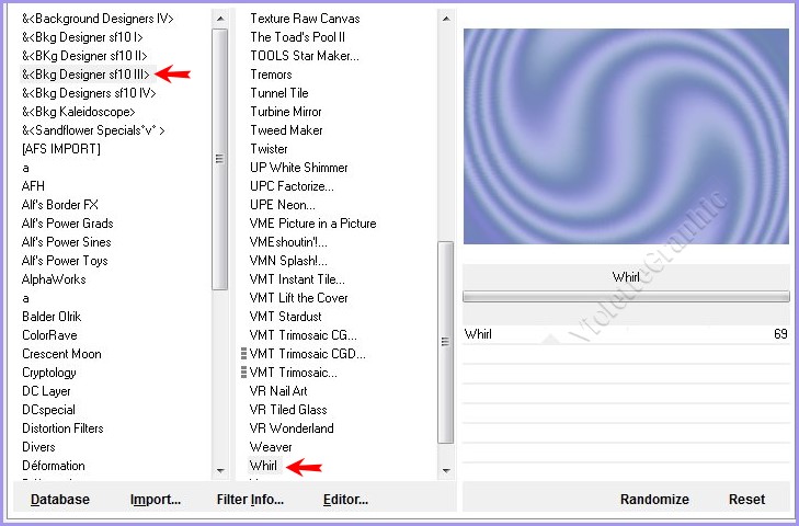 3 - Effets/Unlimited 2.0/ & <BKG Designer sf 10 III> /Wirl réglages suivants :