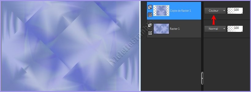 Calques/ Dupliquer **Image/Rotation libre de 90° à droite Mode de fusion sur Couleur Résultat
