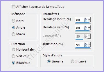 6 - Effets/Effets d'image/Mosaïque sans jointure réglages suivants :