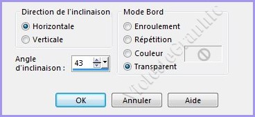 9 - Effets/ Effets géométriques/ Inclinaison réglages suivants :