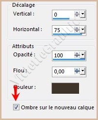 9 - Effets/Effets 3D/Ombre Portée : 0/75/100/0/couleur #3f352b
