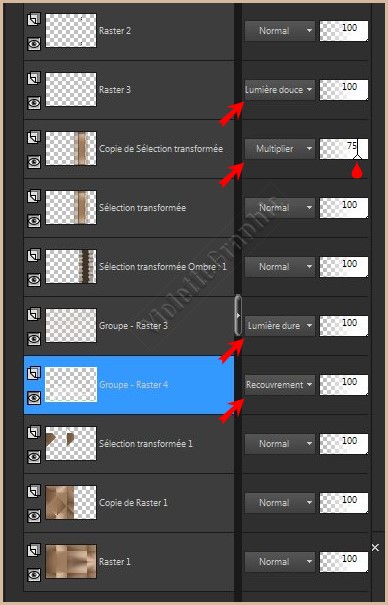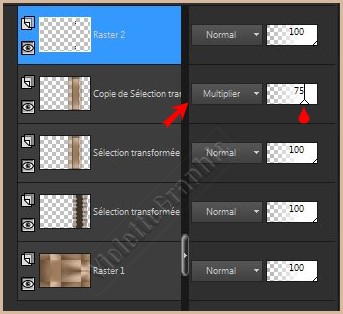 11 - Activer le calque supérieur cliquer sur la déconnexion **Calques/Dupliquer Mode de fusion: Multiplier Opacité à 75%
