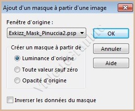 ** Activer le masque Exkizz_Mask_Pinuccia2.pspimage Calques/Nouveau calque de masque/à partir d'une image/Ajout d'un masque à partir d'une image sélectionner le masque Exkizz_Mask_Pinuccia2.pspimage