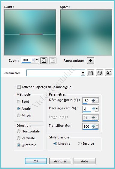 18 - Activer le calque inférieur ** Réglages/Flou/Flou gaussien : rayon : 20 **Effets/Effets d'image/Mosaïque sans jointure réglages suivants :