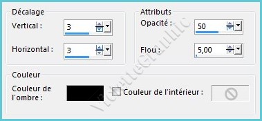 20 - Effets/Effets 3D/Ombre Portée : 2/2/25/2/couleur #000000 Répéter l'ombre portée avec les valeurs négatives : - 2