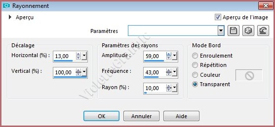 **Effets/Effets de Distorsion/ Rayonnement réglages suivants :